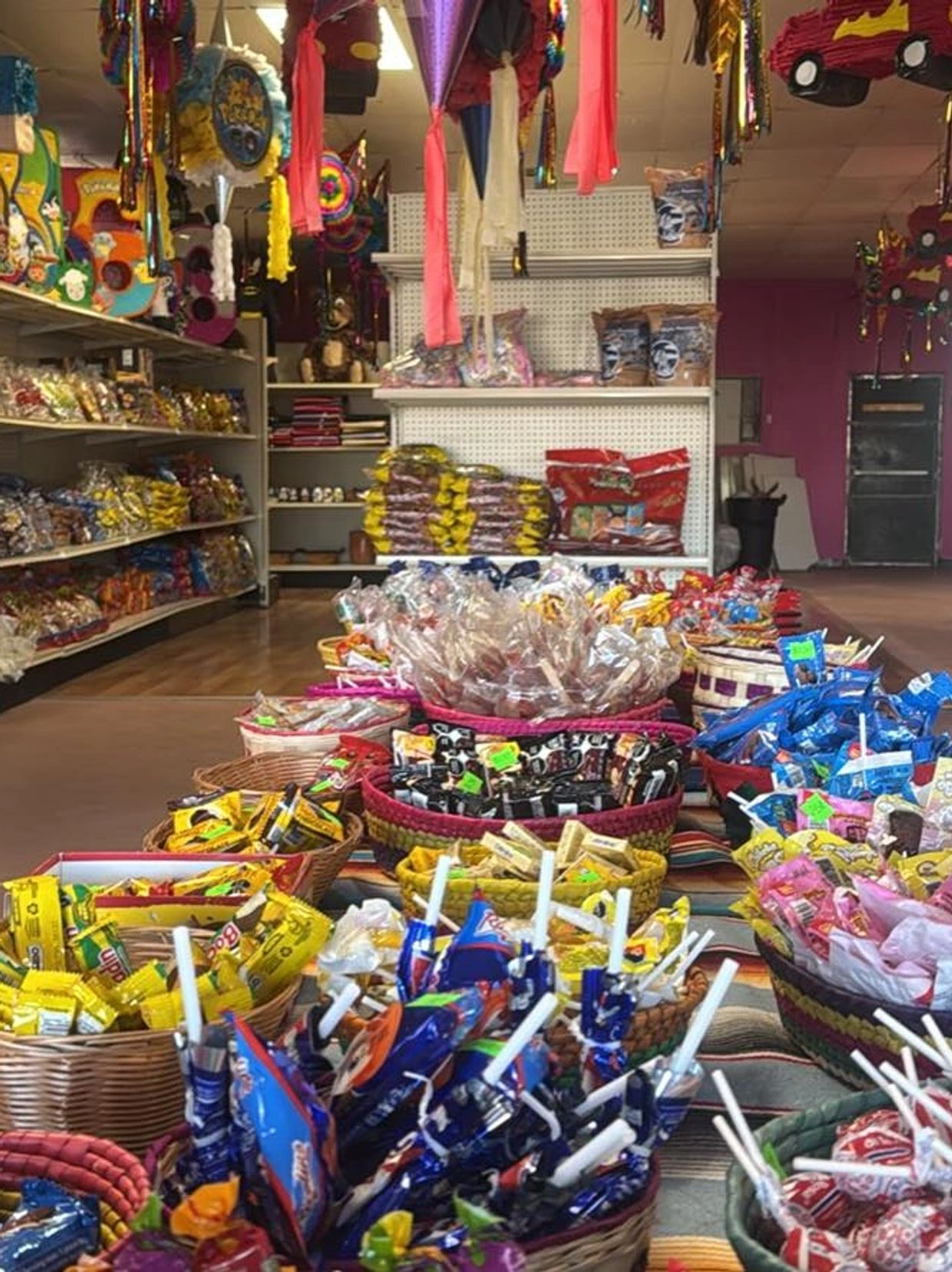 Ofresemos una gran variedad de Dulces Mexicanos (Mazapan, pelones, galletas, churros, etc...) , Piñatas, mascaras, artezanias y muchisimo mas...
